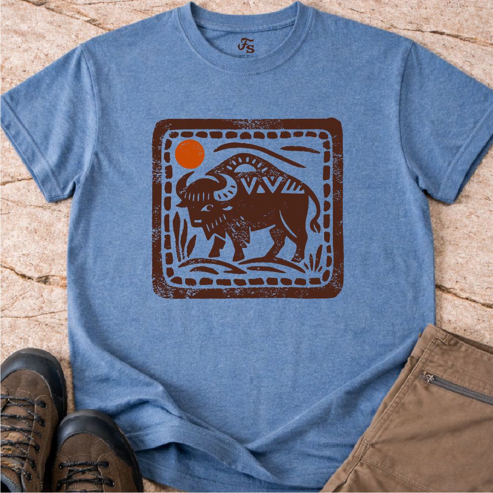 This unisex Buffalo Desert Folk Art T-shirt features a bold, handcrafted illustration inspired by Southwestern and primitive folk art.