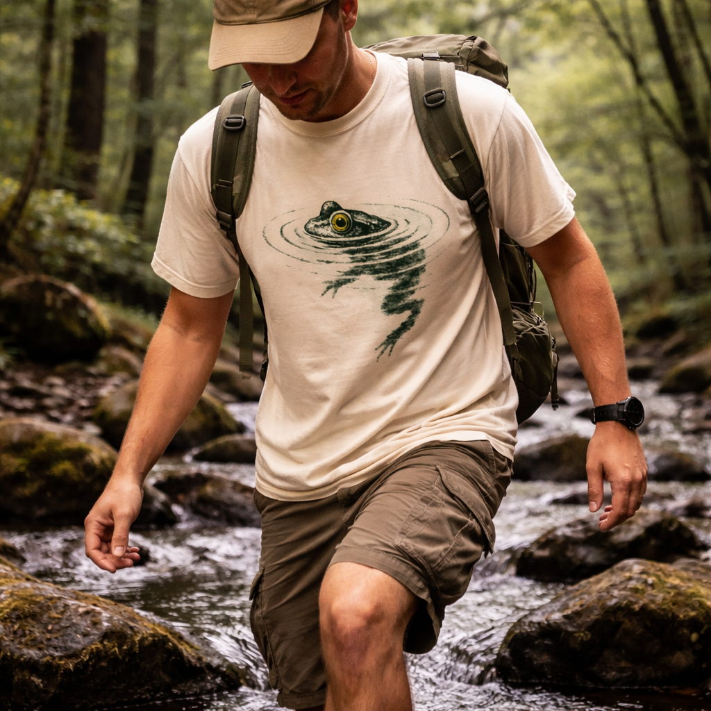 Our designs are dyed into the actual fibers of the shirt. The graphic becomes part of the fabric, not a barrier on top of it. You can't feel where the design ends and the cotton begins. No cracking, no peeling, no sweaty chest square three miles into a hike. It will be your go-to pick for any adventure.